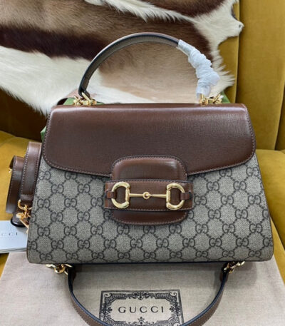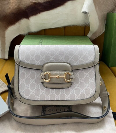 Original price was: $600.00.$285.00Current price is: $285.00.GG HORSEBIT 1955 SMALL 27 BAG IN BEIGE CANVAS AND BROWN CALFSKIN