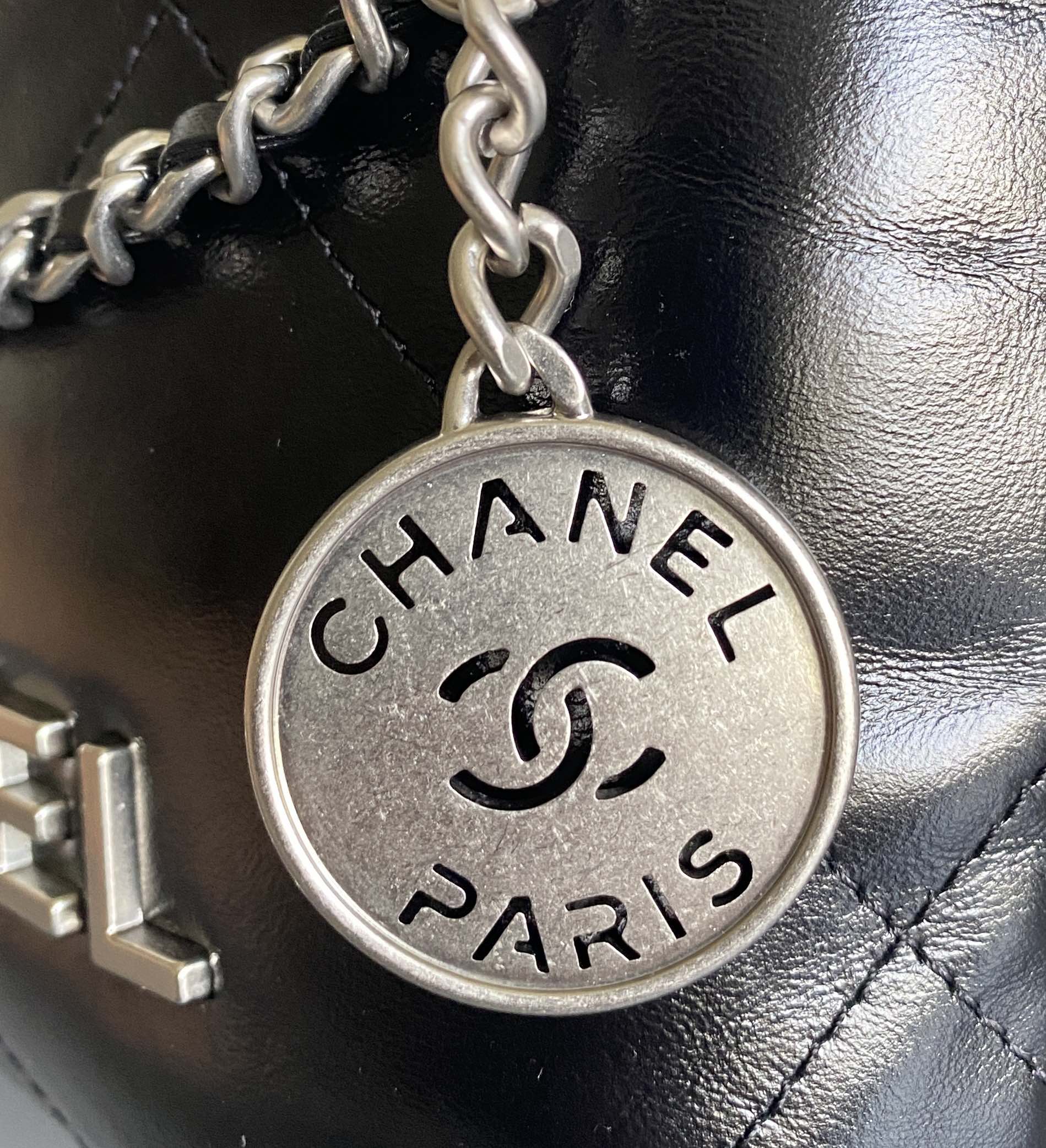 - Color: Black. Silver hardware