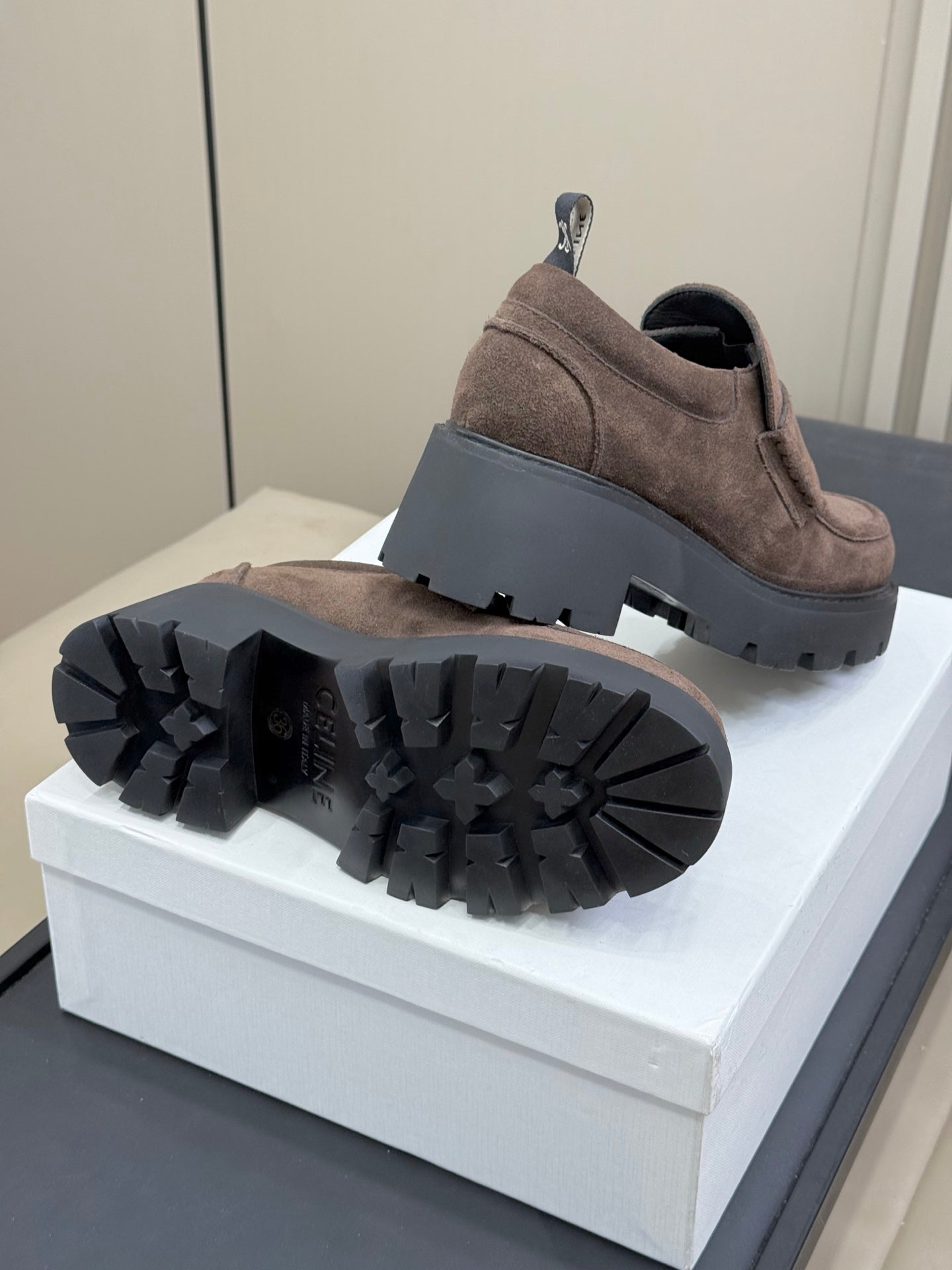 Be the first to review “CELINE 25S SERIN CHUNKY LOAFERS 50MM IN BROWN SUEDE”