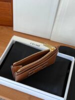 CELINE 25S ZIPPED CARD HOLDER 11 IN BROWN CALFSKIN GOLD HARDWARE