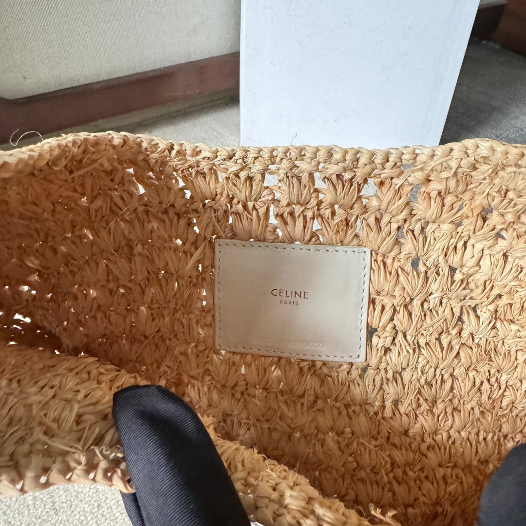 CELINE PANIER HOBO BAG 33 IN RAFFIA AND CALFSKIN LOGO WHITE
