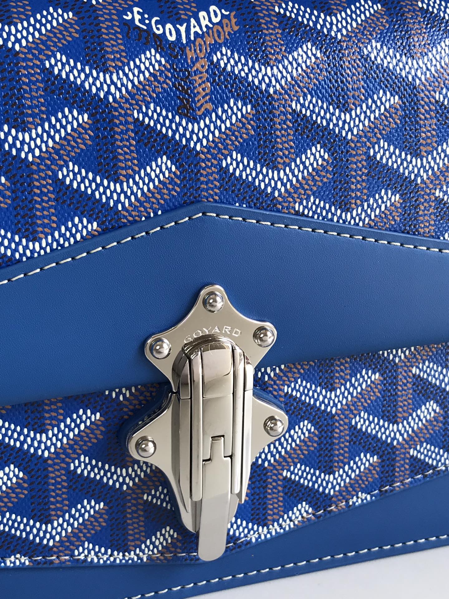DUCHESSE MARIE-CAROLINE BAG 25 IN SAPPHIRE BLUE GOYARDINE CANVAS AND SMOOTH CALFSKIN