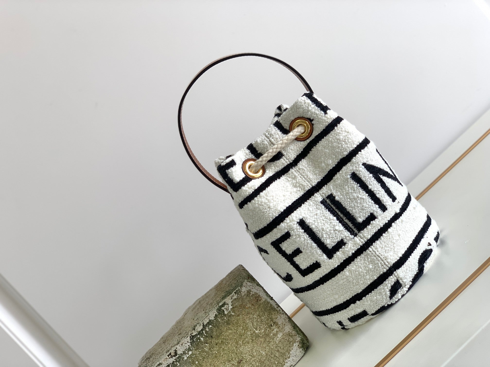 - Material: fabric lining. hand carry. drawstring closure. leather handle length 13 cm