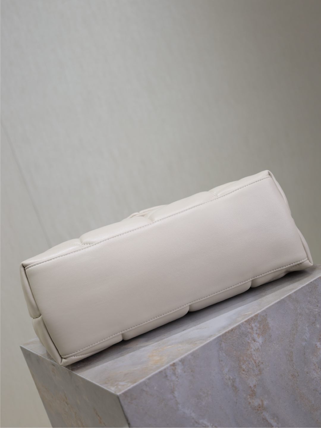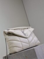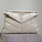 YSL 25S LOULOU PUFFER GM 35 IN SMOKEY TAUPE CALFSKIN SILVER HARDWRE