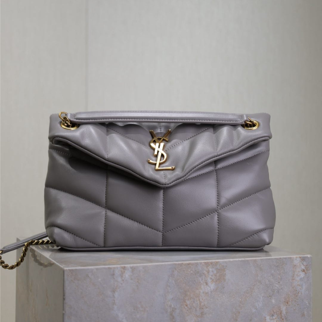 YSL 25S LOULOU PUFFER MEDIUM 29 IN SMOKY LAVENDER CALFSKIN