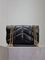 YSL 25S LOULOU PUFFER MINI 23 IN BLACK CALFSKIN GOLD HARDWRE