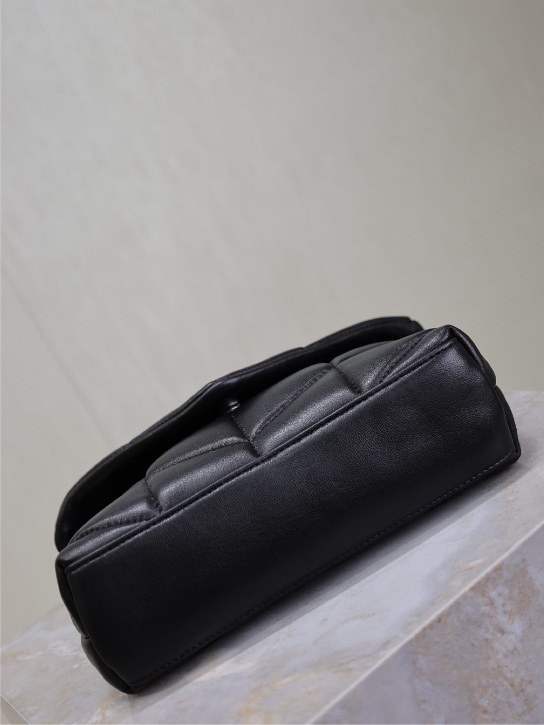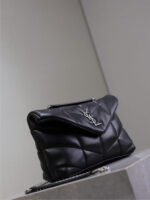 YSL 25S LOULOU PUFFER MINI 23 IN BLACK CALFSKIN SILVER HARDWRE
