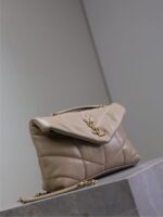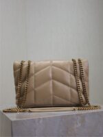 YSL 25S LOULOU PUFFER MINI 23 IN BROWN CALFSKIN GOLD HARDWRE
