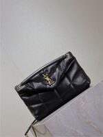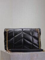 YSL 25S LOULOU PUFFER MM 29 IN BLACK CALFSKIN GOLD HARDWRE
