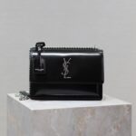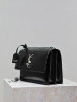 Be the first to review “YSL 25S SUNSET MEDIUM 22 IN BLACK SHINY CALFSKIN SILVER HARDWRE”