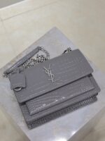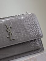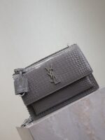Be the first to review “YSL 25S SUNSET MEDIUM 22 IN DARK GRAY CROCODILE-EMBOSSED SHINY CALFSKIN SILVER HARDWRE”