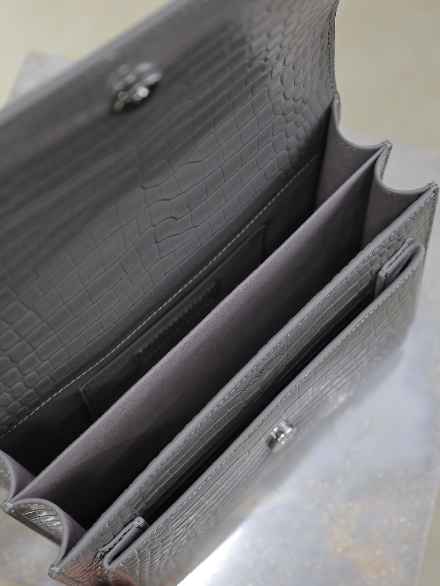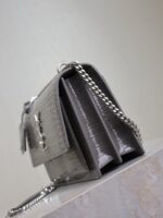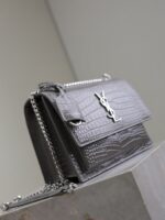 YSL 25S SUNSET MEDIUM 22 IN DARK GRAY CROCODILE-EMBOSSED SHINY CALFSKIN SILVER HARDWRE