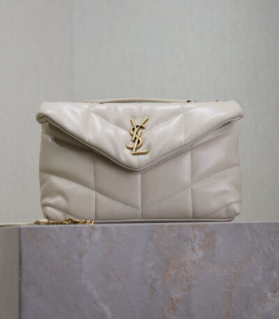 Original price was: $799.00.$285.00Current price is: $285.00.YSL 25S LOULOU PUFFER MINI 23 IN BLANC VINTAGE CALFSKIN GOLD HARDWRE