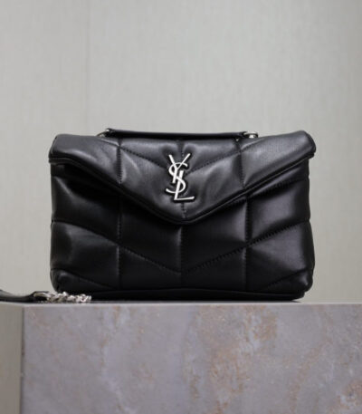 YSL 25S LOULOU PUFFER MINI 23 IN BLACK CALFSKIN SILVER HARDWRE